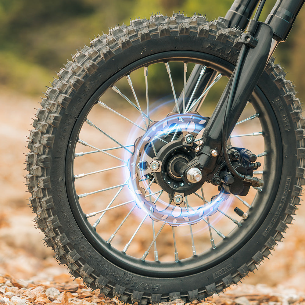 Tackle any terrain with confidence! The 14" front and 12" rear fat tires provide exceptional grip and stability, whether you're navigating city streets, rocky beaches, grassy fields, or winding forest trails.